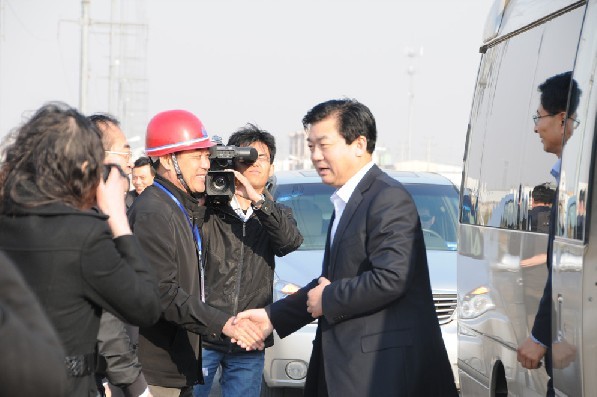 3月17日下午,濰坊市委副書記、市長許立全視察了北海路、虞河上游綜合整治等集團承建的市重點工程。集團公司董事長徐鵬強、總經理朱九洲、副總經理閆鵬等在現場陪同。在現場,許市長詳細詢問工程進展、拆遷工作進展、工程周邊有關單位協調進展等情況。 許立全市長是在參加完全國“兩會”后的第一時間親臨重點工程視察的,由此也可看出市領導對重點工程的重視程度。市政府副市長劉偉陪同許市長視察。