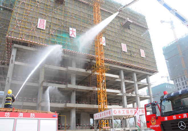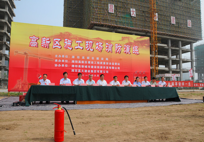 為切實(shí)推進(jìn)施工現(xiàn)場(chǎng)消防安全管理,提高全員消防應(yīng)變能力,以實(shí)際行動(dòng)開展好“六月安全月”活動(dòng),2013年6月5日上午,集團(tuán)公司在高新區(qū)中央商務(wù)區(qū)施工現(xiàn)場(chǎng)組織了大型消防演練活動(dòng)。來自各基層單位分管生產(chǎn)的經(jīng)理、工程管理人員,施工現(xiàn)場(chǎng)專職安全員,演練現(xiàn)場(chǎng)三個(gè)分公司的全體管理人員和勞務(wù)專業(yè)隊(duì)伍,高新區(qū)工程建設(shè)、總承包、監(jiān)理單位以及勞務(wù)分包單位代表等近1000人參加了演練活動(dòng)。