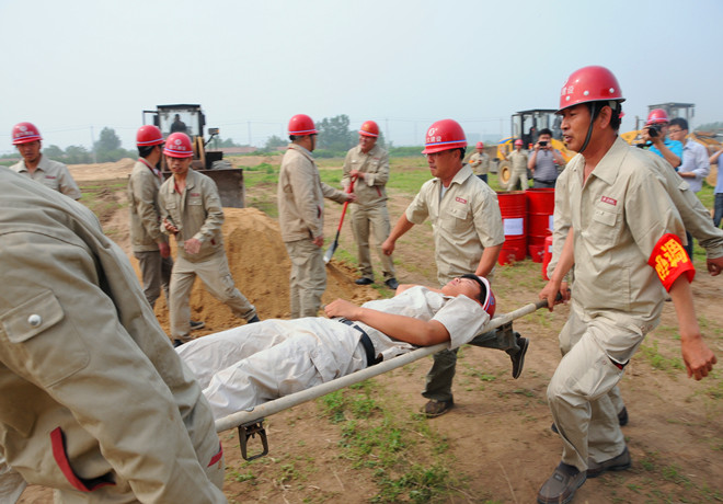 集團(tuán)公司對(duì)此次演練工作非常重視,專門成立了演練組織,制訂了實(shí)施方案,總經(jīng)理朱九洲、監(jiān)事會(huì)主席滕忠斌、副總經(jīng)理閆鵬等高管層領(lǐng)導(dǎo)親臨現(xiàn)場(chǎng)觀摩演練活動(dòng)。高新區(qū)管委會(huì)、建設(shè)局、公安分局、安監(jiān)站等政府和部門有關(guān)領(lǐng)導(dǎo)和負(fù)責(zé)人出席了演練活動(dòng)。高新區(qū)消防大隊(duì)、高新區(qū)醫(yī)院專門派出消防車和120急救車配合了上午的演練活動(dòng)。
