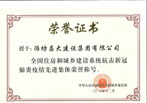 近日,中華人民共和國住房和城鄉建設部通報表彰并頒發證書、獎牌,表彰全國住房和城鄉建設系統抗擊新冠肺炎疫情先進集體。集團因在新冠肺炎疫情防控工作中的履職擔當和出色作為被濰坊市住建局和山東省住建廳推薦而獲此殊榮。
