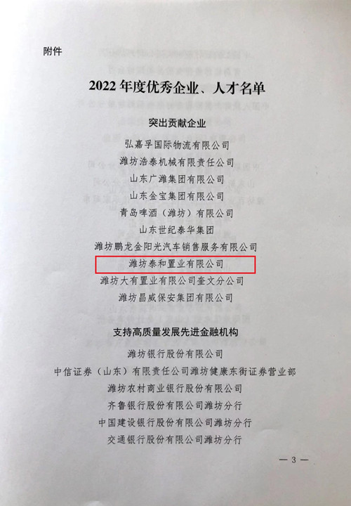 集團泰和置業公司再獲“突出貢獻企業”榮譽