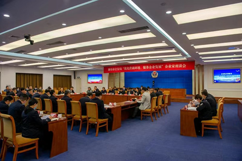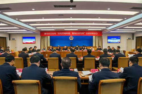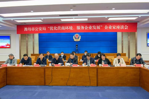 2023年3月22日下午,濰坊市公安局企業家座談會在市公安局北樓二樓電視電話會議室舉行。濰坊市副市長、市政府黨組成員、市公安局黨委書記、局長、督察長徐磊,濰坊市委統戰部副部長、濰坊市工商聯黨組書記徐鳳徽,濰坊市公安局在家領導班子,濰坊市各領域重點企業負責人,市公安局指揮中心、政治部等有關部門主要負責同志出席會議。會議通報了去年以來市公安機關有關工作情況,解讀近期市公安局出臺的服務企業相關文件,聽取了與會同志對公安機關服務企業的相關需求和意見建議,徐磊副市長講了話。會上,集團公司董事長徐鵬強對一直以來公安系統為企業發展營造的良好環境表示感謝,對廣大公安干警落實治安防范措施、加大掃黑除惡力度;嚴厲打擊經濟犯罪、挽回經濟損失;交通運輸中的指導服務;網警部門高效的輿情管控等諸項工作中的辛勤付出表示真誠謝意。并希望繼續加強警企共建,共同攜手抓穩定、?保平安、促和諧,在全市拼經濟、搞建設、抓發展中做出更大的貢獻。