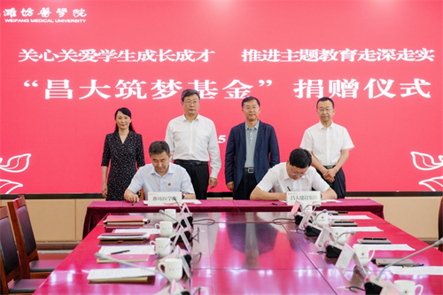 2023年5月18日下午,濰坊昌大建設集團捐贈濰坊醫學院“昌大筑夢基金”捐贈儀式在濰坊醫學院行政樓隆重舉行。
