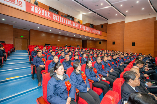 工人文化宮穹頂璀璨、滿天星光,寓義職工大眾之家?!澳廴珕T意志,高舉高質量發展旗幟,砥礪前行、實干奮發,以新質生產力實現百年昌大目標!”的大幅標語催人奮發。上午九時,會議準時開幕。集團董事長徐鵬強、總裁朱九洲以及穆乃杰、姜建魯、吳杰、孟憲禮、房海、劉雁冰、惠守江、王建波等高管出席大會并在主席臺就座。集團公司第九屆職工代表、列席代表,集團公司中層管理人員、2024年度受表彰的先進集體代表和先進個人以及總部全體人員共319人參加大會。